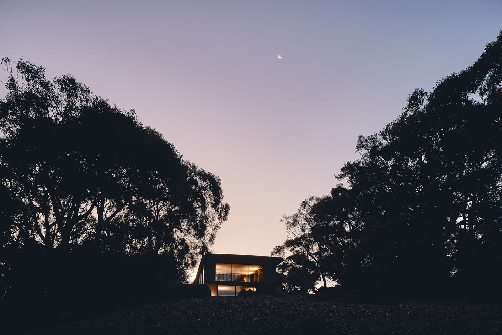 Moving through the house, corridors gently center views of prominent trees, and interstitial spaces outline vistas of the outside, forming spaces of quiet reflection and reading rooms that invite contemplation of the landscape. Across the seasons and the time of day, light and shadow play across walls, floors, and windows - inscribing the solar and lunar rhythms of the land into the house.